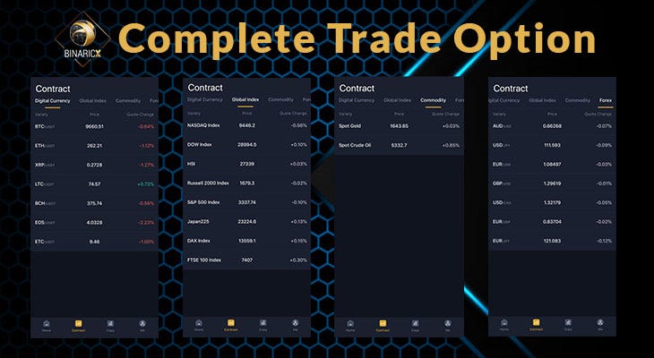 BinaricX adalah platform contract trading yang baru saja hadir menghiasi dunia crypto, tetapi tak hanya cryptocurrency saja ada banyak jenis perdagangan yang bisa kita lakukan disana seperti Currency, Commodities dan Stocks